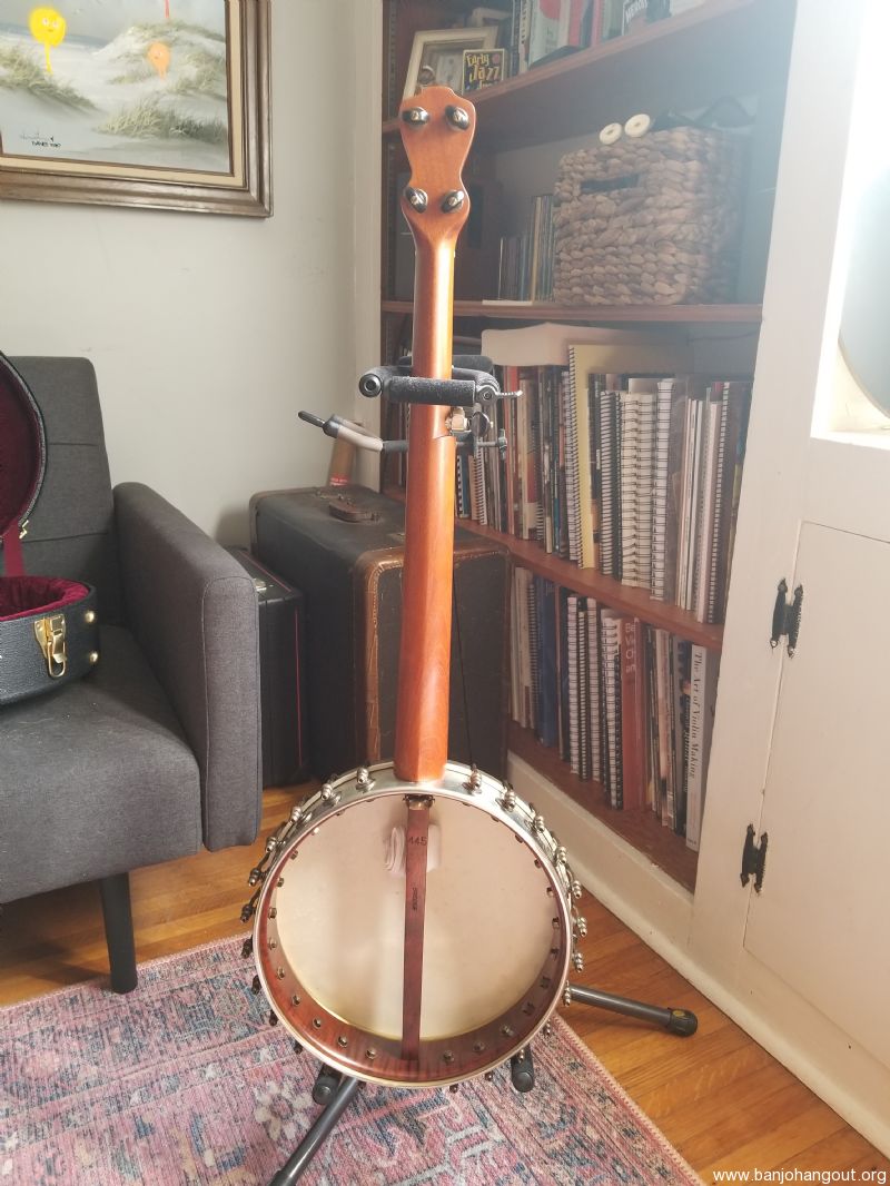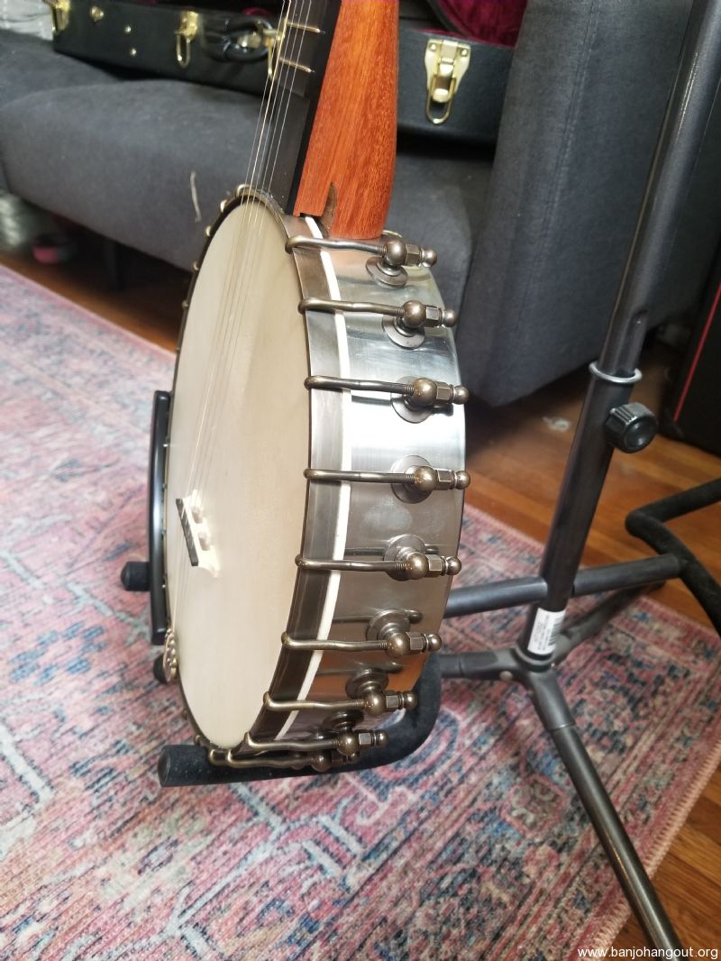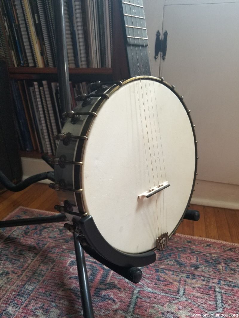 The banjo is in excellent condition with only the faintest signs of wear. The medium frets are in great condition as well. This banjo will ship in its arched, hardshell case, which is in excellent condition as well.