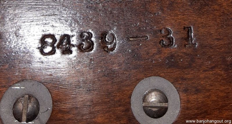 This banjo has an original 1926 Gibson TB-2 rim and resonator with matching FON’s, 8439-31. It is a shoe-bracket rim with block construction. Original bracket shoes, flat hooks and nuts, grooved tension hoop, and single coordinator rod. It has an unmarked plastic head and a Presto window tailpiece. The flange is a from a later date bearing hex cutouts and the resonator is attached with the original ’26 hex nuts. The arm rest is a wooden Slimline. The top of the rim was modified to properly fit the replica Pyramid tone ring made by Arnold Clayton. The resonator is single bound and shows moderate wear, light rash, several dings, and lacquer checking, but no cracks or repairs. The neck is a very nice modern creation (maker, date unknown), 26 3/8” scale, made of maple with a rosewood fretboard and ebony peghead overlay. No cracks or repairs. The inlays are interestingly unique, in the style of Gibson’s Style 5 UB (ukelele banjos) of that era. I have never seen that on a regular banjo before, but I like it! It has 5th string capo spikes at the frets 7, 8, 9. It has Gotoh tuners with vintage ivoroid buttons. The banjo is set up an 11/16 in bridge, leaving 1/16” string height at the 12th fret. Overall, the banjo is in very good condition, with no major issues. It plays very well, in both bluegrass and old time jams. It comes with a like new black hard shell case. PRICE REDUCED TO $1950. Buyer to pay exact shipping charges TBD.