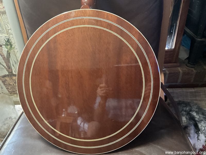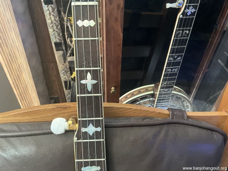 This banjo was the originally the personal project of Dean Hoffmeyer maker of Hoffmeyer finger picks etc(which I personally use). Dean crafted the Honduran mahogany neck to the specs of Jim Mill’s origional Mack Crow and feels exactly the same with a very slight v-neck in the first position transitioning to a c-shape. The reso and rim are Gill and Cox with a gold plated Blaylock tone ring of the “ Crowe Beartracks” formula.Obviously great attention to detail by Dean has gone into this banjo creating a fantastic tribute to the late Jim Mills’ Mack Crow bbanjo. TKL concept fiberglass case.