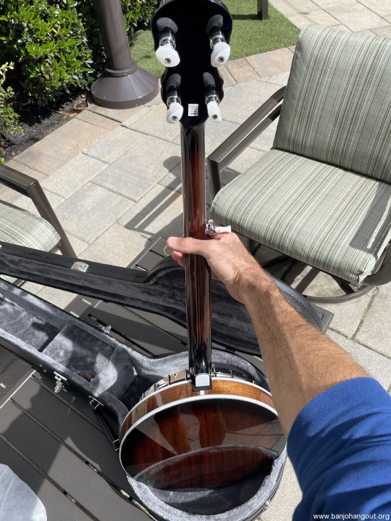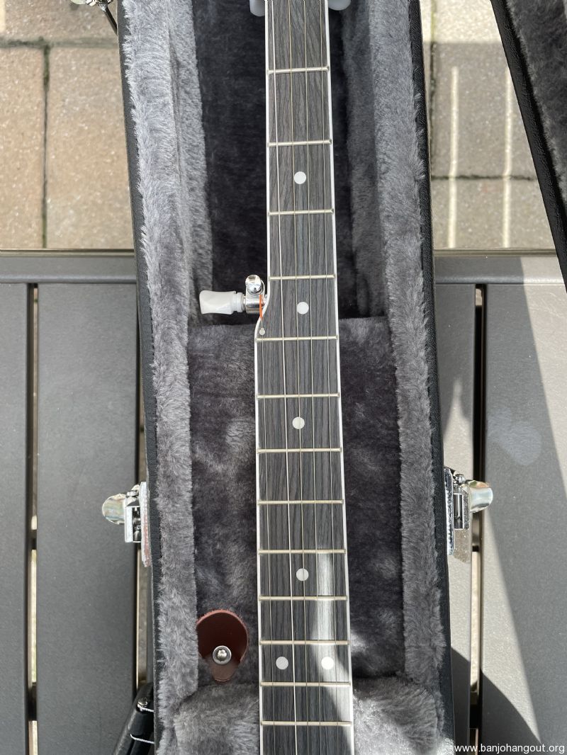 You'll notice there is a thin protective cover over the banjo head (as it's brand new). I can remove the protection and send other photos if helpful.