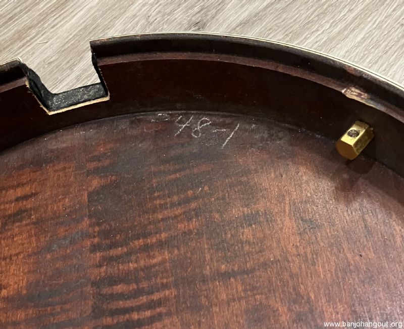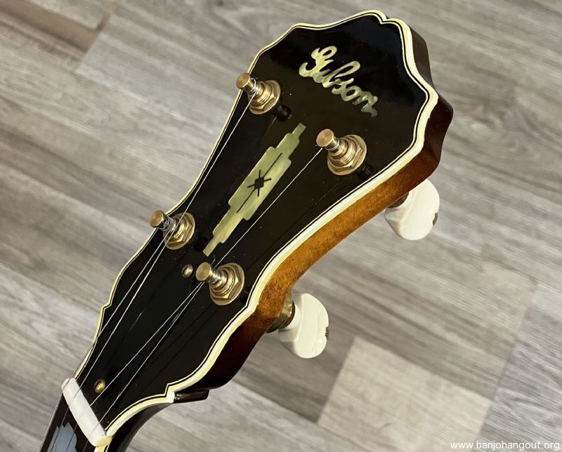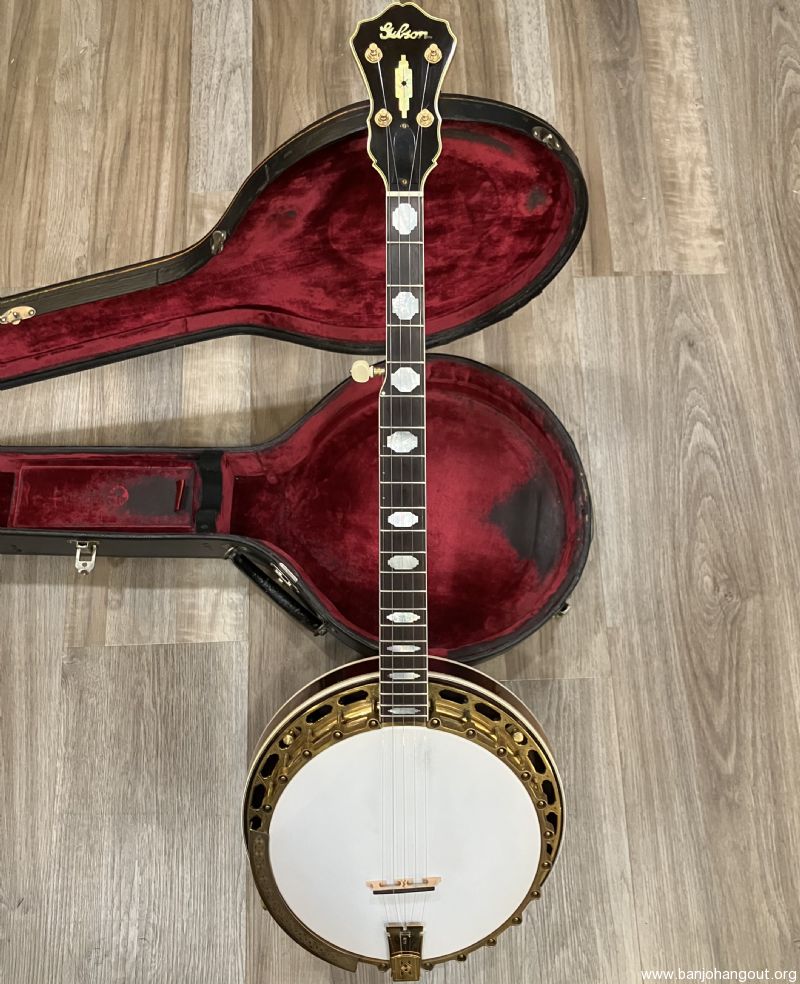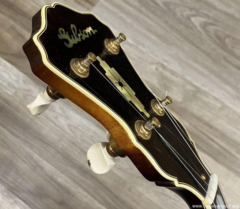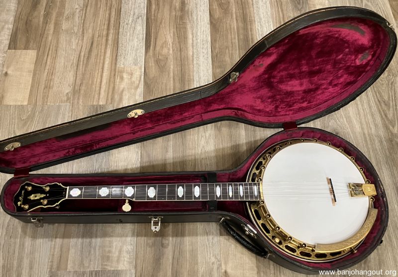 For several years the Gibson company was no longer producing a gold plated banjo until the advent of the Style 18 in 1937. The 18, along with the 7 and 12 were the new top-tension design. This banjo happens to be the very first Style 18 made. This TB-18 F.O.N. 348-1 is known as the "Lloyd Dunn" and very well documented. The 18 features a beautiful curly maple resonator and gold plated hardware with the Style 18 engraving pattern. The tone ring is a high profile, full weight ring and the original "clamshell" tailpiece and tuners are included. Also featured is a fantastic curly maple conversion neck by Chris Warner in the classic 18 style complete with a radiused fretboard. The shows fantastic figure with a great profile and playability. The tuners are Keith standard in gold plating. The original tenor neck and "red line" case are included in the sale. This banjo incidentally is currently housed in a "red line" case that was for an RB-18 previously. Here's a YouTube sample of this banjo: youtube.com/watch?v=83e3AgcEGTM Here's a summary of its early history: TB-18 (FON 348-1) was the first style -18. It was assembled in October of 1937. It was not immediately sold but rather used as a salesman’s demo for a year. It was shipped on Thursday, February 16th, 1939 to William L. Nutting Inc. in Nashua, New Hampshire, and was then shipped on Saturday, March 18th, 1939 to DeLand Music in DeLand, Florida. This instrument (348-1) belonged to Lloyd W Dunn, Vice President of Research and International Marketing at Capitol Records who acquired it from Roc Hillman. There's much more information regarding Lloyd Dunn and this banjo. If you have any questions or desire additional information, don't hesitate to ask. Thanks for looking.