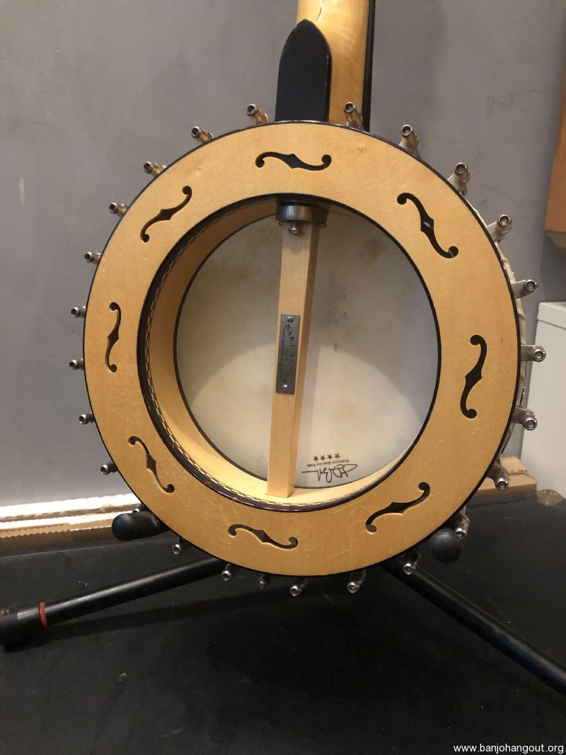 This was Bart's top model, and he has generally been considered one of the top independent banjo builders in recent decades. He's particularly noted for being the best builder of these internal resonator style banjos (influenced by the old Bacon FF Professional and Grand Concert models). After a while he stopped making this model because he put so much work into it that he couldn't actually make a profit from what he was selling it for. Bart has recently retired from banjo building at all so what's out there now is it. There weren't too many of these models, and there won't be any more in the future.