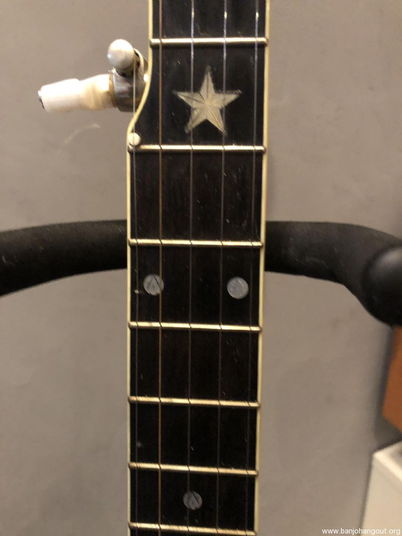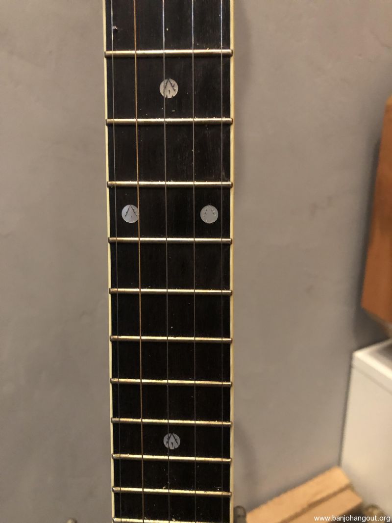 Neck is straight and true. Intonation is good. 5th string spikes at frets 7 & 9. There is a little bit of fret wear on the first few frets, but they have plenty of life left. There is some finish checking on the neck and resonator, which was a frequent issue on Reiter banjos from this era, owing to the particular kind of finish he used, and is likely to affect any similar model that you find. It is purely cosmetic, and hardly noticeable except on close inspection.