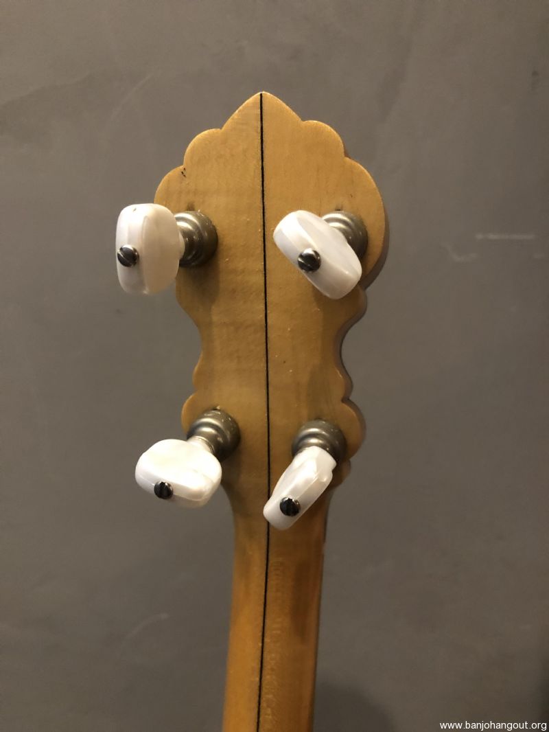 Neck Construction: 26 1/4 inch scale length 22 nickel silver frets Bone nut Steel reinforcement (adjustable) Veneer laminated in center of neck Four planetary tuning pegs with lovely large and contoured buttons Geared fifth peg Traditional peghead shape and neck contour Maple dowel stick