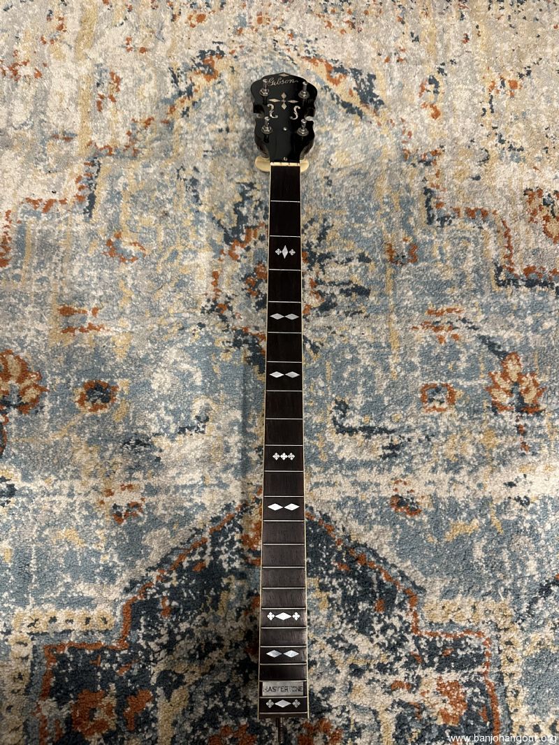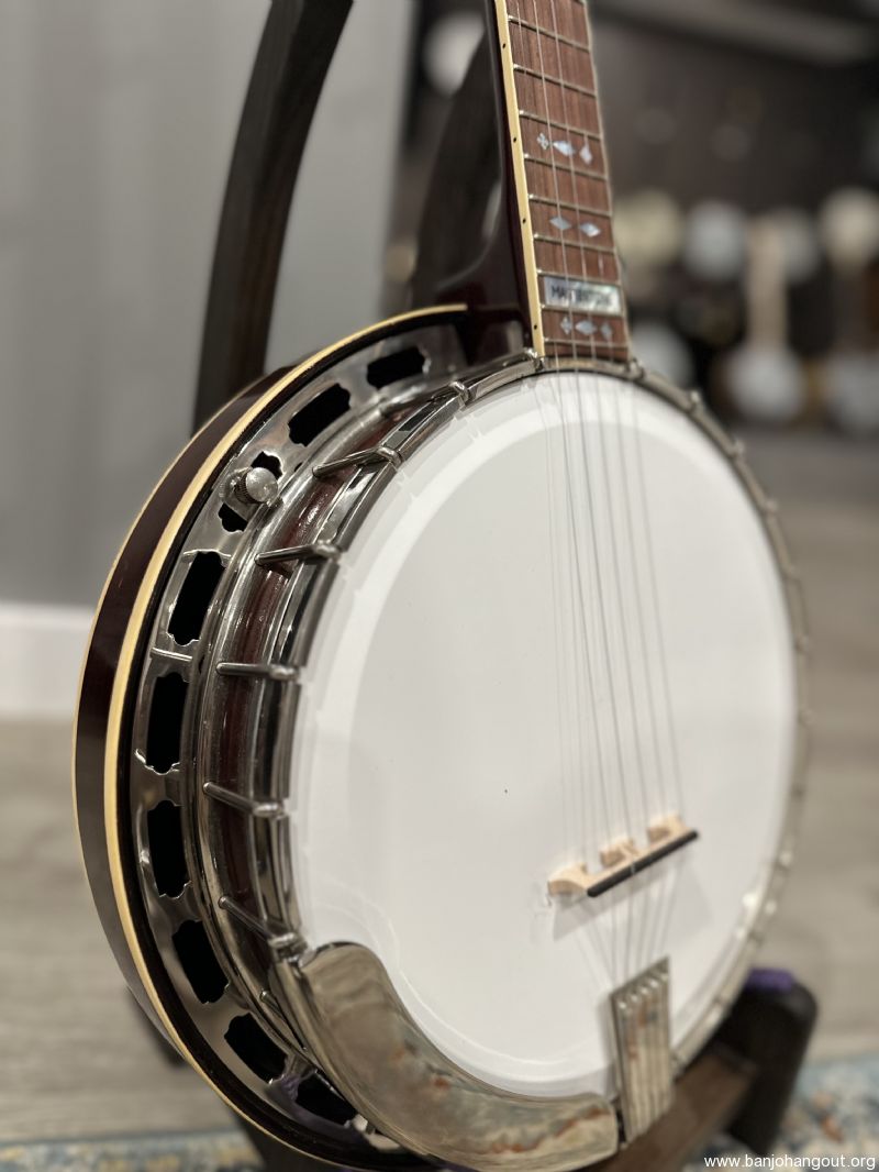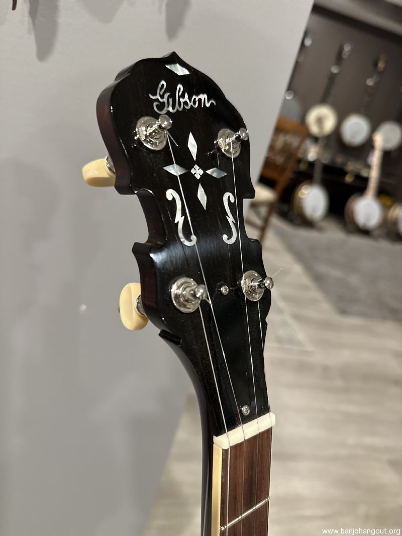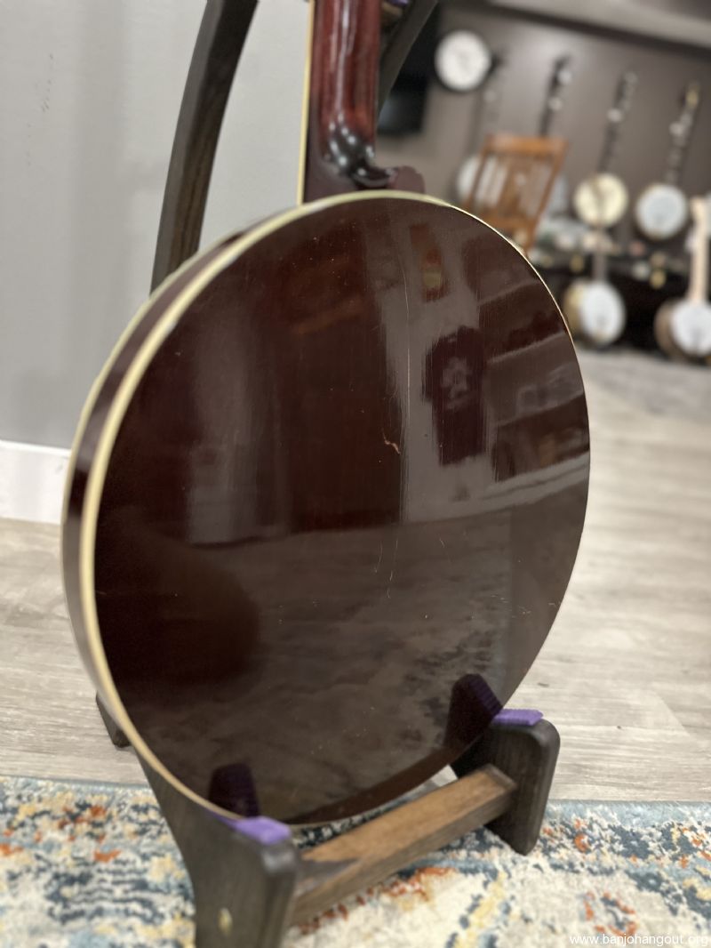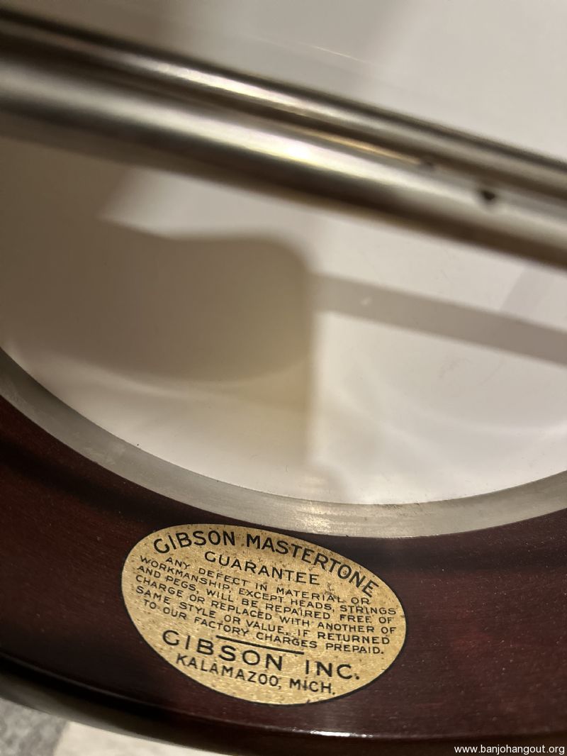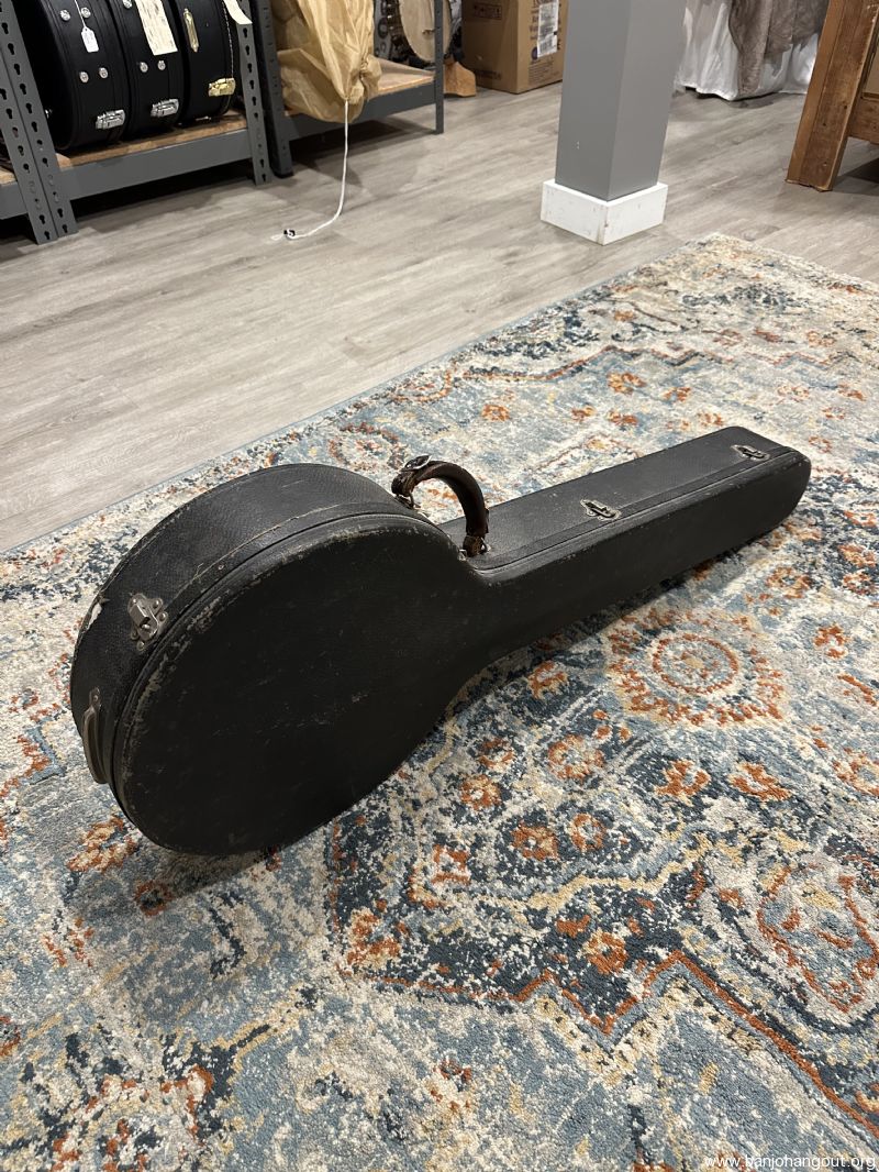 FON 8826-6. This Prewar Gibson Plectrum Banjo was converted a few years ago with a brand new Arthur Hatfield Neck specially made for this banjo. It retains all of its original metal parts, original PB neck, and original PB (same as RB) Gibson case which all is in great condition! It has a replacement armrest and tailpiece, but the originals will be included with the sale. The neck is one of the nicest examples we've seen by the late, great Arthur Hatfield and features Rickard 10:1 tuning machines. If you're looking for a great sounding banjo that has all of its original parts and pieces, this one might the ONE! The original NO-HOLE archtop tone ring makes this one GROWL!