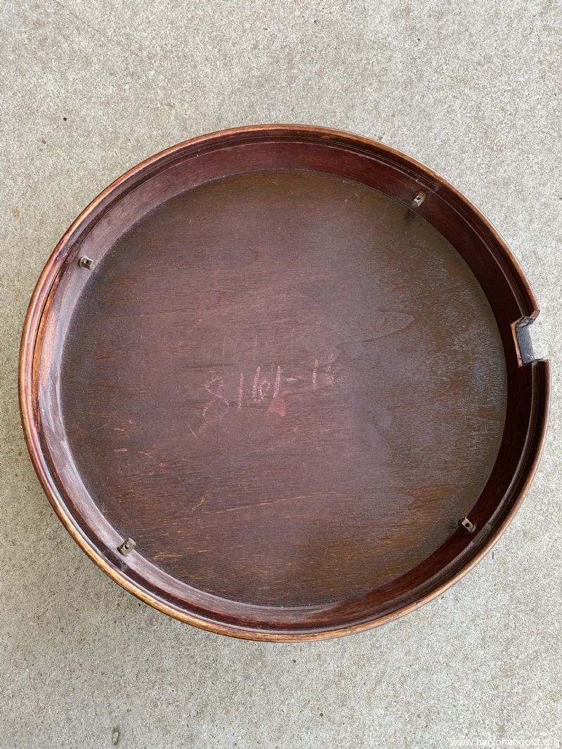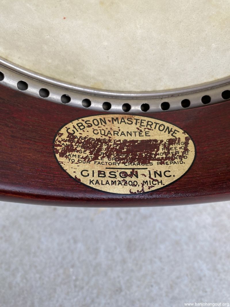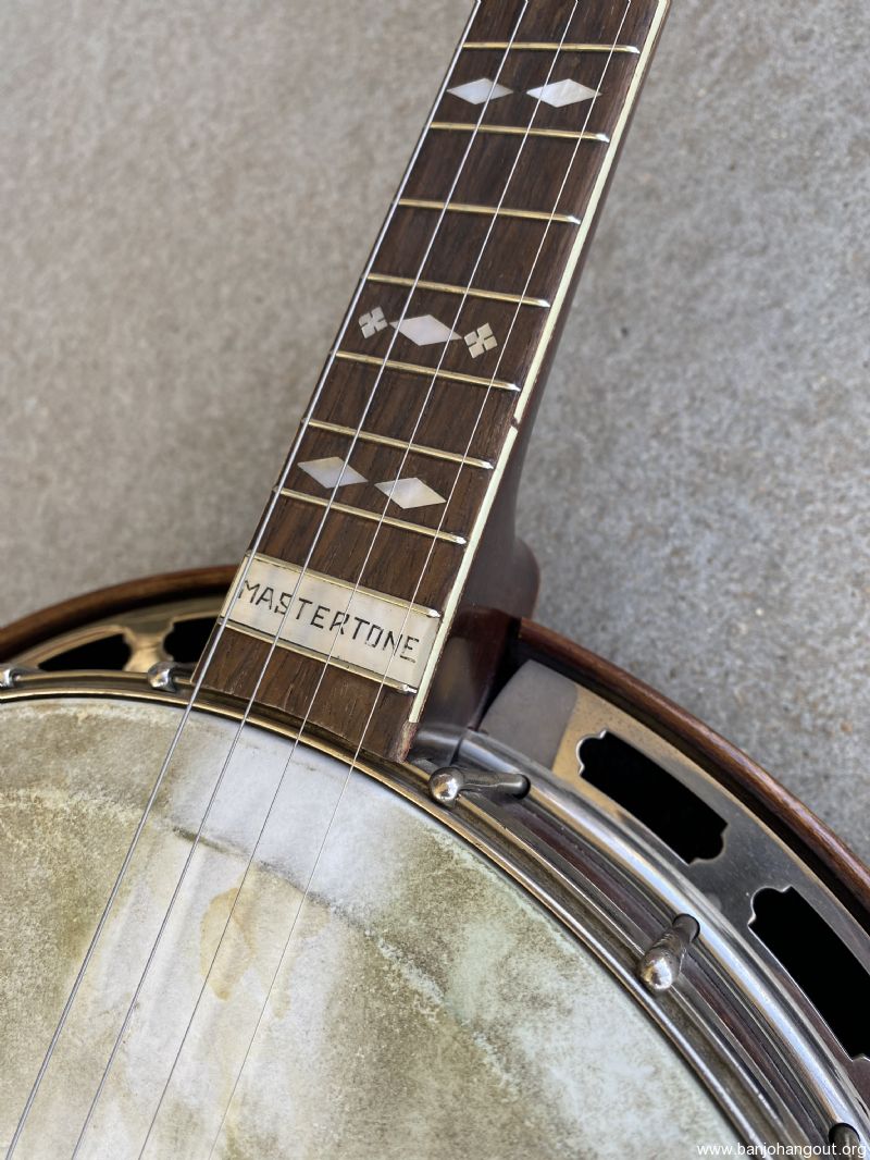 This TB-3 is probably as cheap as you can get into the prewar Mastertone club. This instrument has been largely refinished and is missing three of the four small resonator attachment bolts and two of the bushings for the two tab tuners. The armrest is original but has had some repairs done to it. The mastertone label has been significantly damaged, but thankfully the “I”s line up where thy are supposed to in “workmanship” and “will”. There is a spot of delamination in the rim and one in the interior of the resonator. For further use as a tenor, it may benefit from a neck set and a refret.