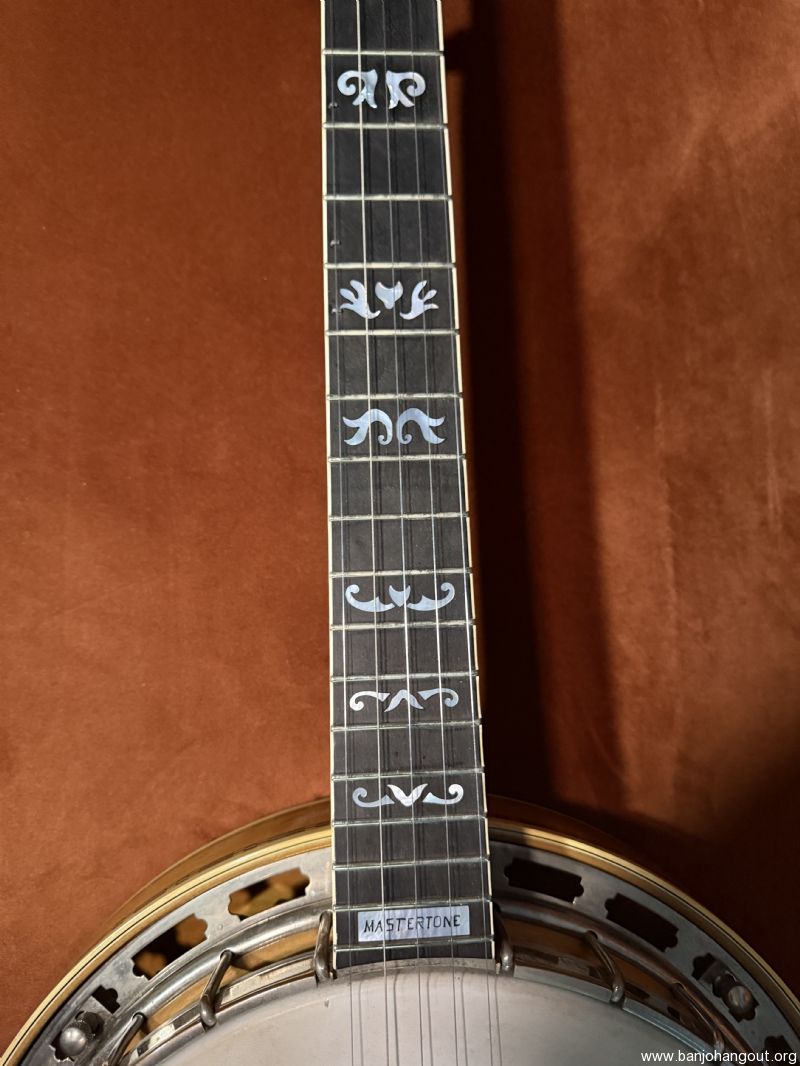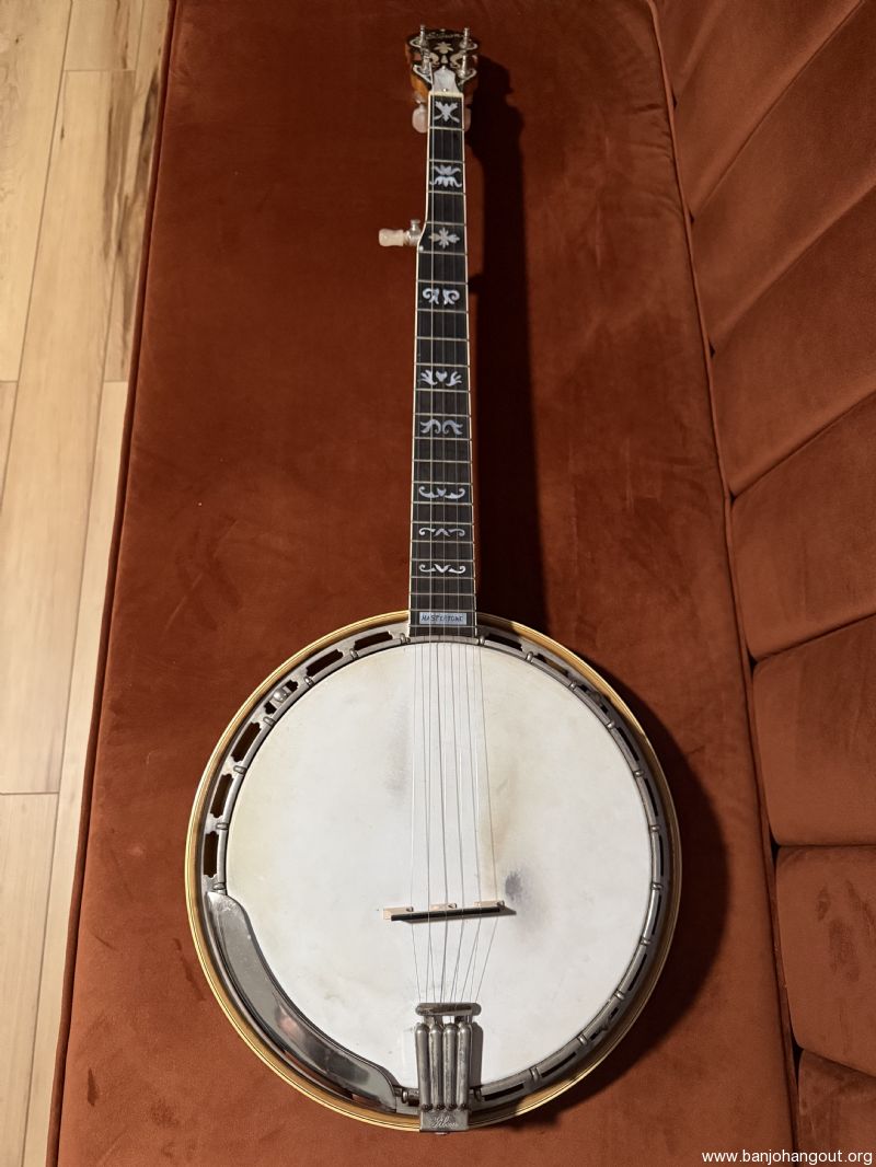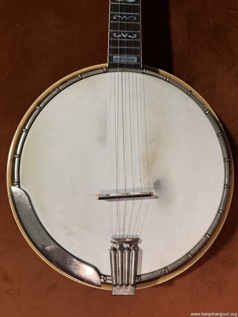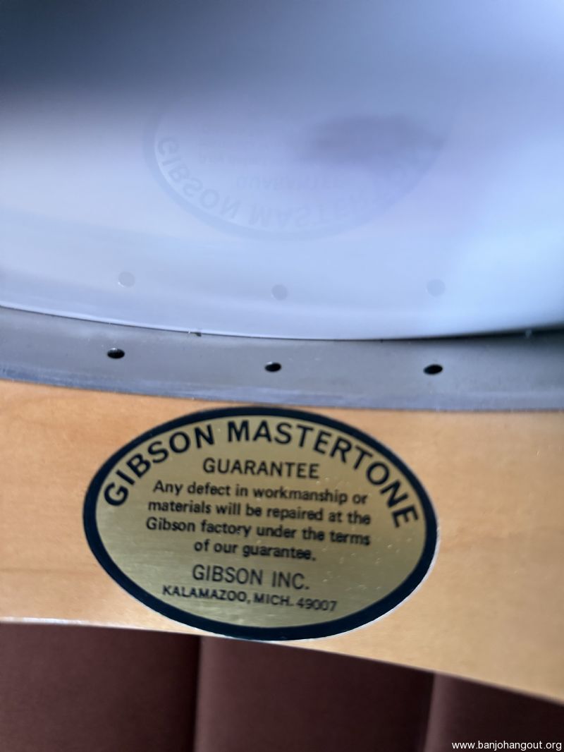For your consideration is a blonde 1983 Gibson Mastertone RB-800 resonator banjo in very good condition. Bound flamed Maple back, sides and neck, Ebony fingerboard, deluxe pearl inlays, checkerboard-style bindings. and Pearl script logo. Recently serviced by the Gibson Restoration and Repair shop where it received a fresh set of frets and a new nut, bridge, and spikes (#7, #9, #10). The banjo has superficial scuffs and dings distributed here and there, with a few small finish chips/defects. See photos for condition details and reach out for any desired close-ups. No signs of abuse and looks great for its age. You'll find a few sound clips (recorded by phone—forgive my very novice playing!) at on.soundcloud.com/2kGeE5rVV8CjyOwevr. The banjo includes its original hard case (complete with scuffs and scrapes). Shipping via insured ground to CONUS. Reach out with questions or requests for additional pics.