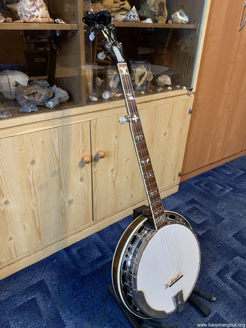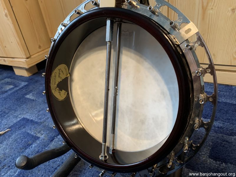 I am offering for sale a Gibson RB-4 five-string banjo, from the Greg Rich era, in excellent condition. The year of manufacture will be somewhere around 1988 and it is no longer possible to determine exactly, since in 2000 the rim was replaced, which comes from a Gibson Earl Scuggs banjo from 1986. The replacement was made by the famous banjo builder Clancy Mullins. Incredible tone ring from the Richard Kulesh AFP 515 factory, which you simply cannot beat. Resonator - beautiful polished walnut that has always been an ornament of the Gibson four-string. The neck is original with classic Flying Eagle inlays, the headstock is Remo Weather King. Bridge by Tim Purcell, Presto tailpiece. Hooks for the fifth string at the 7-10th fret. All other metal parts are original. Coordinator rods and truss rod are absolutely fine. The logo on the rim was probably damaged during the replacement... The banjo has an excellent sound, adjusted. A hard Gator case is included in the sale. Video: youtu.be/39BnOtKLqws