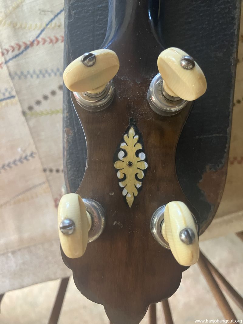 I have collected stringed instruments for over 35 years and at one time had over 200 instruments. All of the older vintage (antique) instruments were purchased from one of three well-known reputable dealers--not from individuals so the assessment and verification was done by professionals. This banjo was purchased from John Bernunzio in Rochester and the above description is his verbatim. It has rarely been out of the case since bought and is in the same condition described.